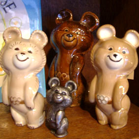 アクリルのバッジです。いろんなミーシャがいるのですが、オリンピックの競技に参加している絵が描かれているものもあってすごく私のツボです。だって決して長いとは言えない足で自転車をこいでいたりするんですもん。たまらなく可愛いです。