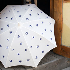 フェブには、カワイイ日傘が入荷しています。 ツバメ柄で、ボタンは木で出来ていておすすめですよ。