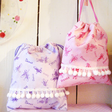 バレエシューズのイラストがとっても可愛い きんちゃくをご紹介します。 白いポンポンもこれまた可愛いです。 小物をなんでもまとめて入れれるので便利ですよ♪